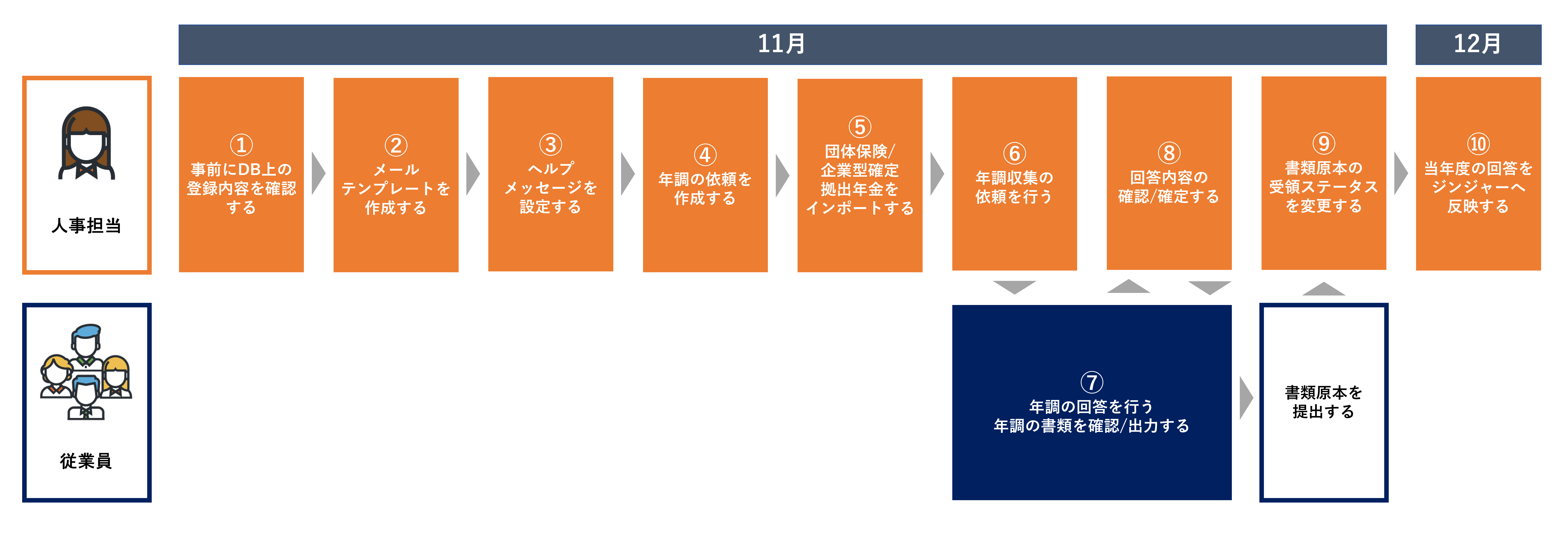 年調収集の一通りの流れを書いた画像があるので、こちらをご確認ください!