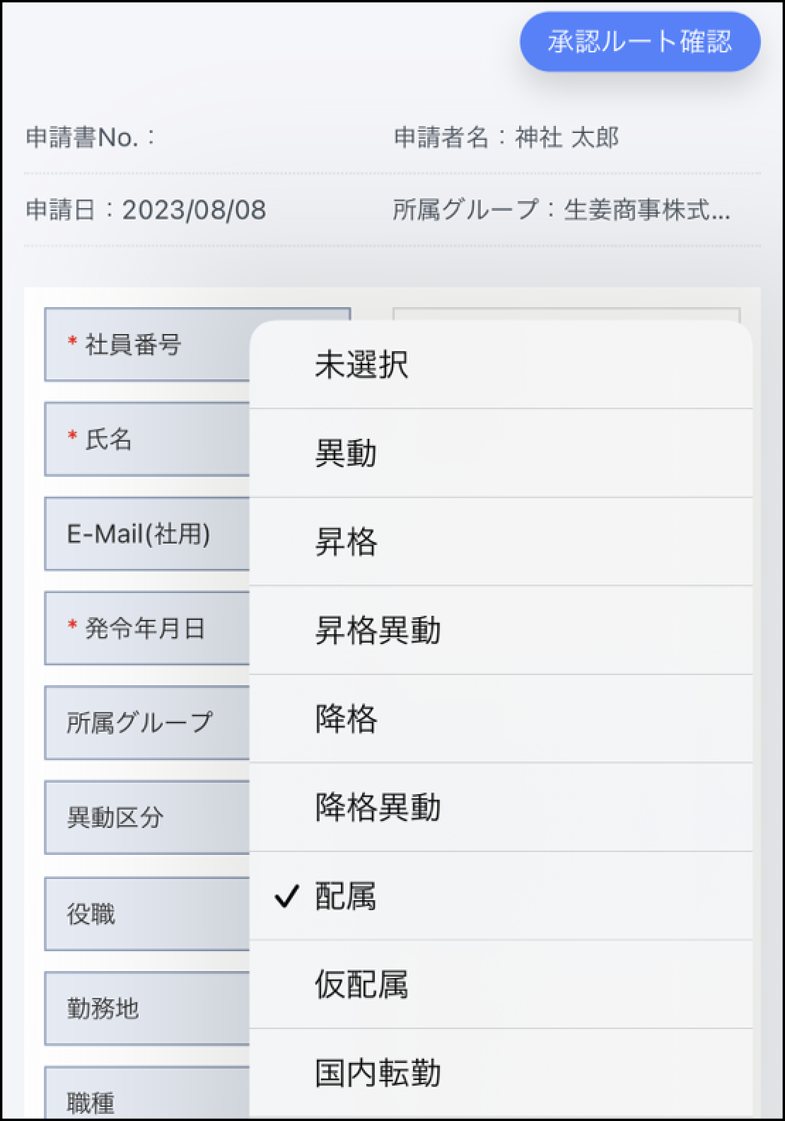 スマートフォン端末を利用し、従業員画面にて従業員が申請書の項目を入力する際に、プルダウン形式の項目については、選択肢の検索ができるようにいたしました。