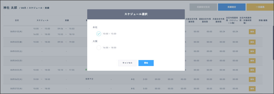 勤務情報画面/出勤簿データのUI変更